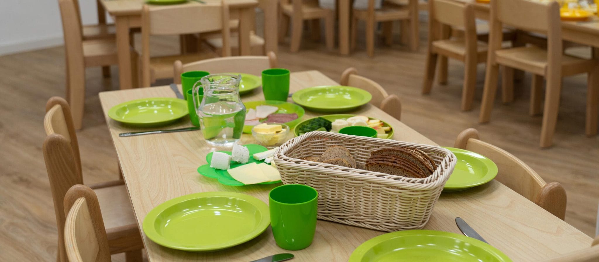 Bei der Zubereitung all unserer Speisen setzen wir besonders auf regionale und saisonale Zutaten. Wir achten auf kurze Lieferwege und möglichst wenig Verpackungsmüll. Verschiedene ansässige Unternehmen gehören zu unseren Kooperationspartnern. Steht auf dem Speiseplan ein Fleischgericht, so gibt es immer eine gleichwertige vegetarische Alternative.